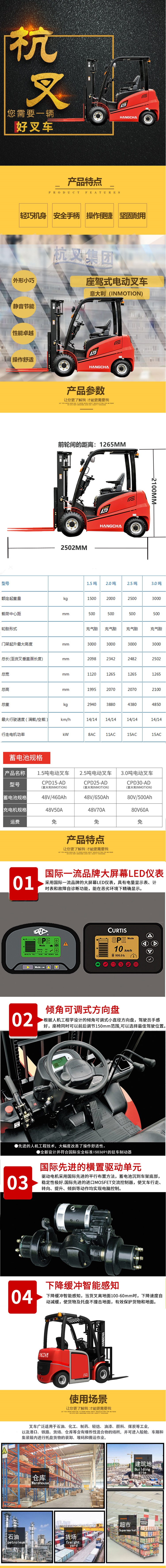 杭州叉车四支点平衡重CPD10/15/20/25/30/35座驾式蓄电池叉车